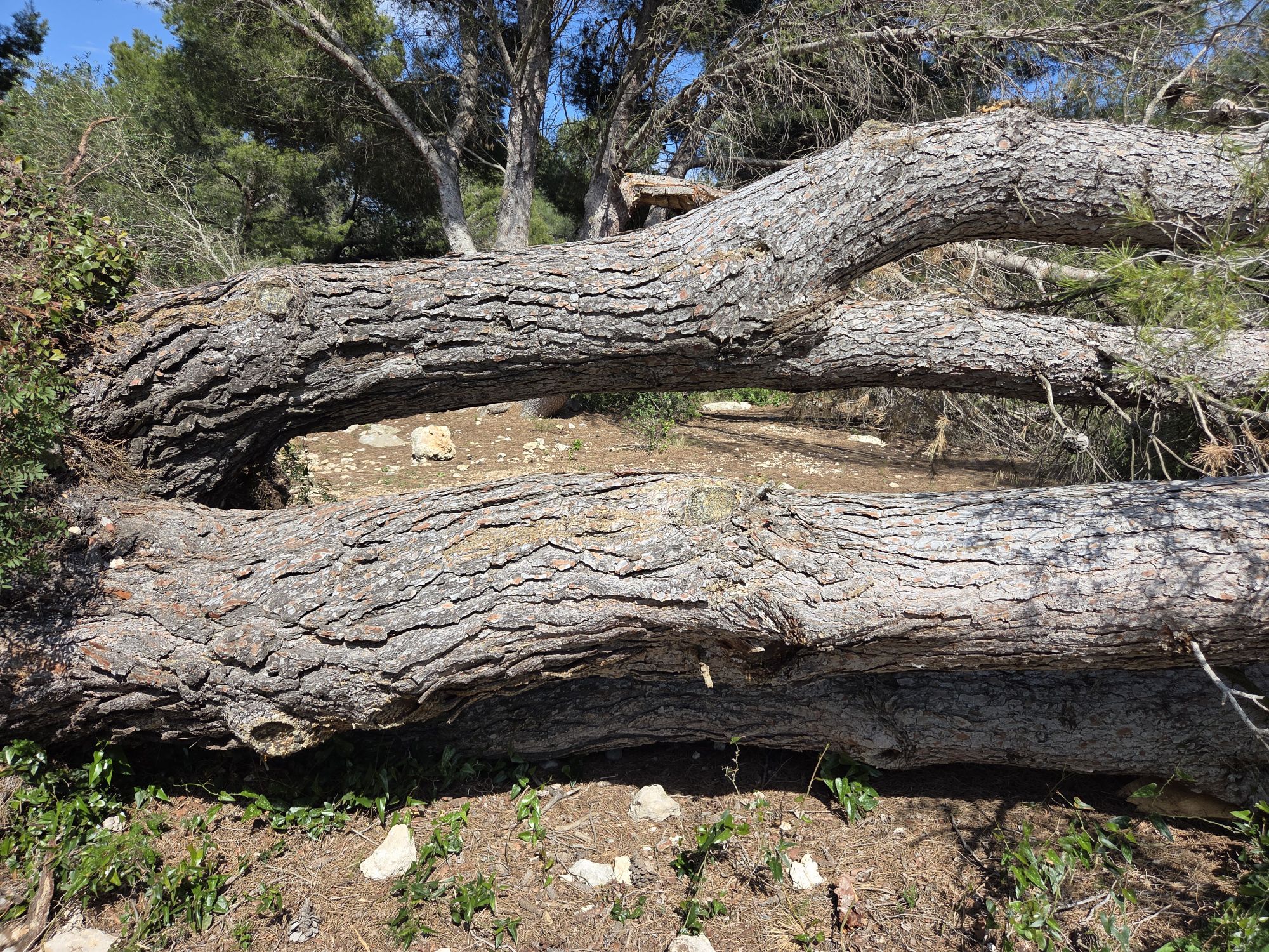 Since 2025, the trees in the Aude region of France have paid a high price for extreme weather and climate events. The other day, we followed an unexplored track on the plateau of Leucate in order to leave the main road where everyone else was walking. The path was easy to follow until we came upon an obstacle in the form of an uprooted tree lying stretched out on its side as if it had fallen into a deep sleep, thrown down by Storm Nils on 12 February 2026. More than two months later, none had dared awaken the sleeping giant.
